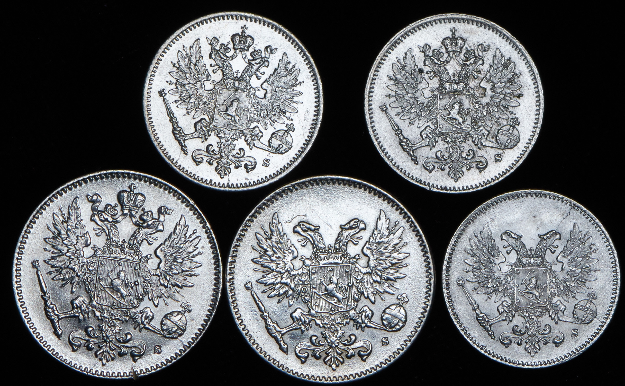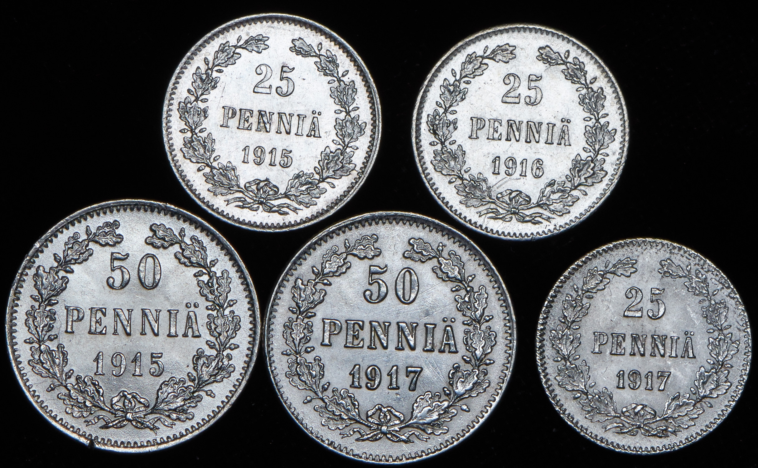 Набор из 5 сер. монет пенни 1915-1917 (Финляндия)