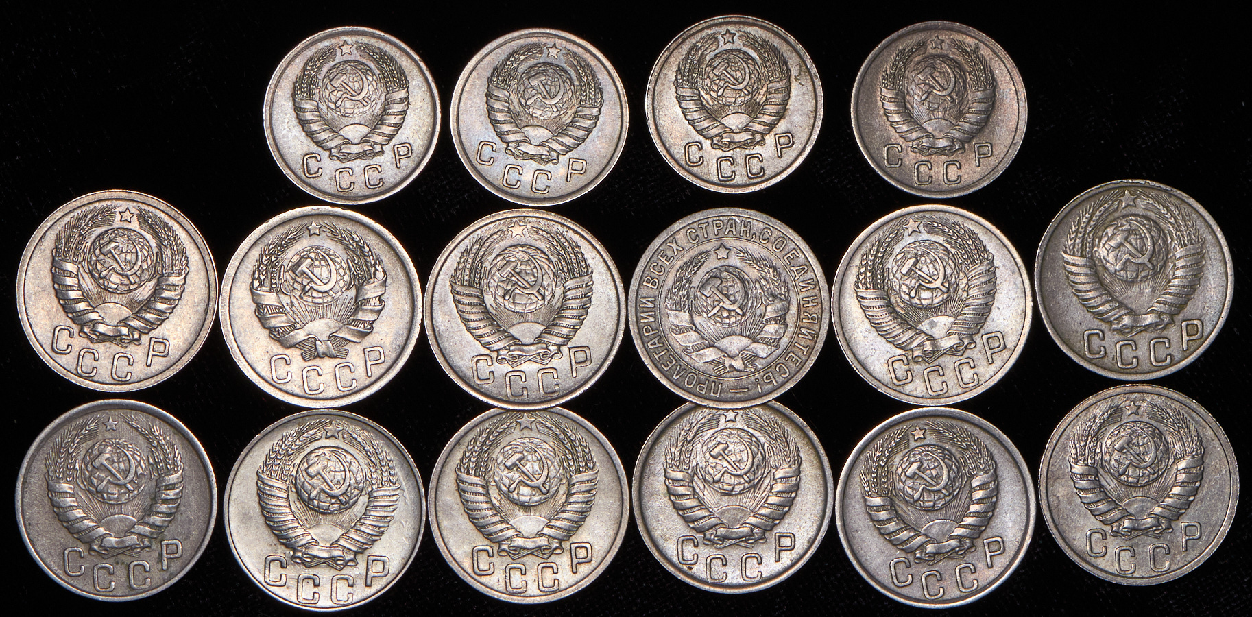 Набор из 16 монет 10, 15 копеек 1933-1952
