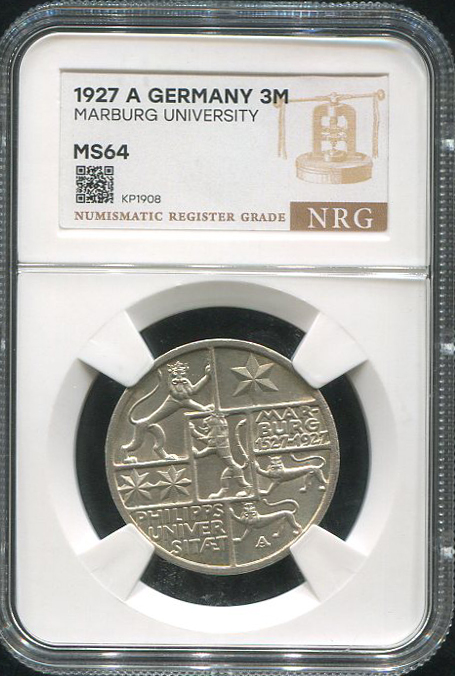 3 марки 1927 "400 лет Университету в Марбурге" (Германия) (в слабе) А
