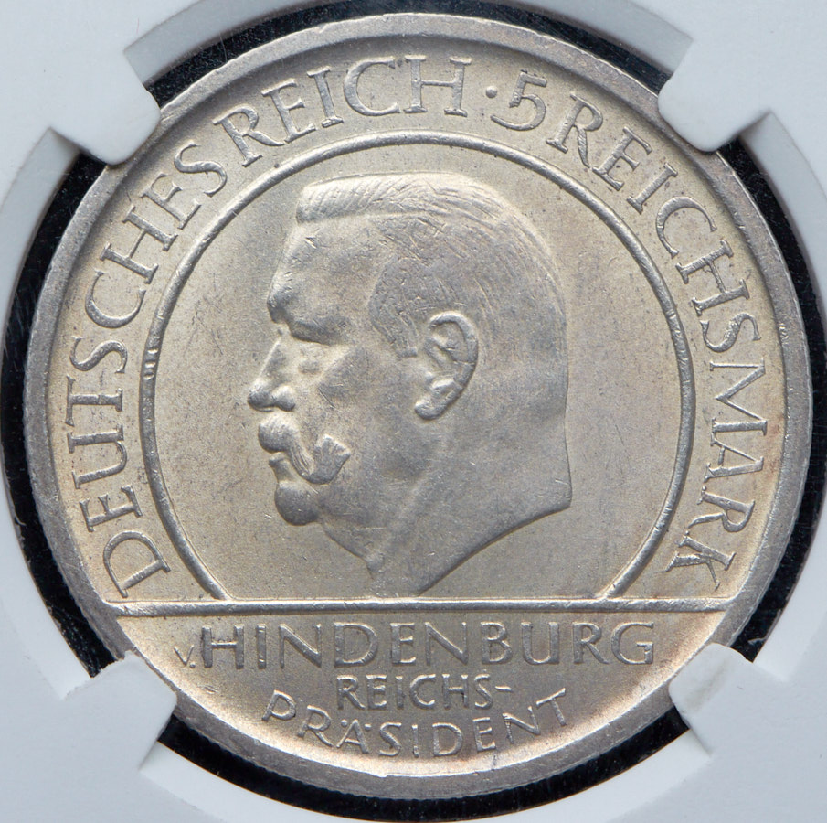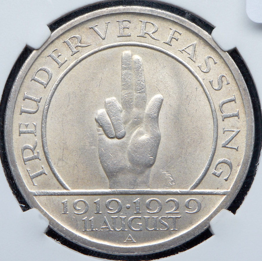 5 марок 1929 "10 лет конституции" (Германия) (в слабе) А