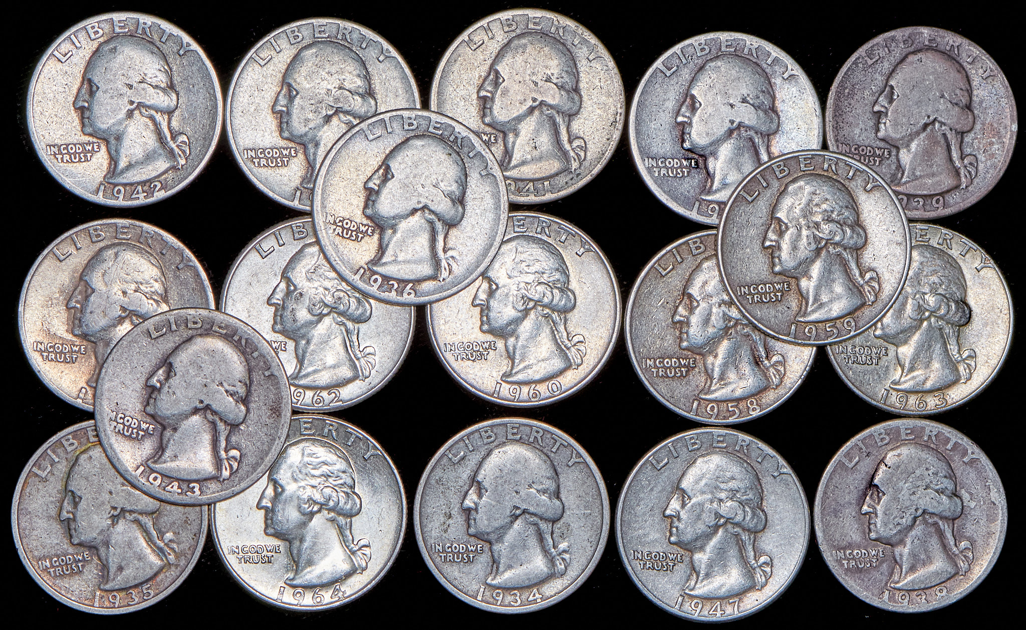 Набор из 18 сер. монет 25 центов 1934-1964 (США)