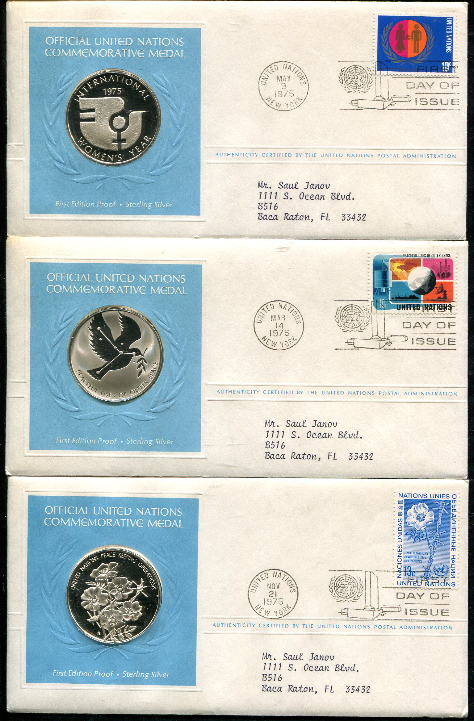 Диаметр 39 мм. Масса каждой примерно 24,5 грамма.В конвертах с гашением "first day of issue".
