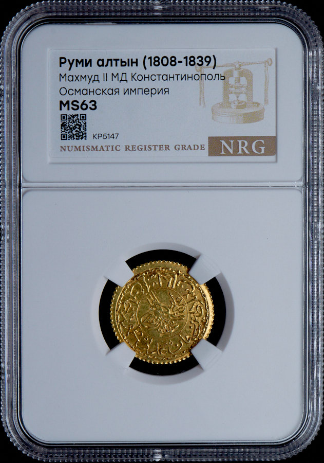 Махмуд II (1808-1839).Монетный двор Константинополь.Редка.В слабе NRG.