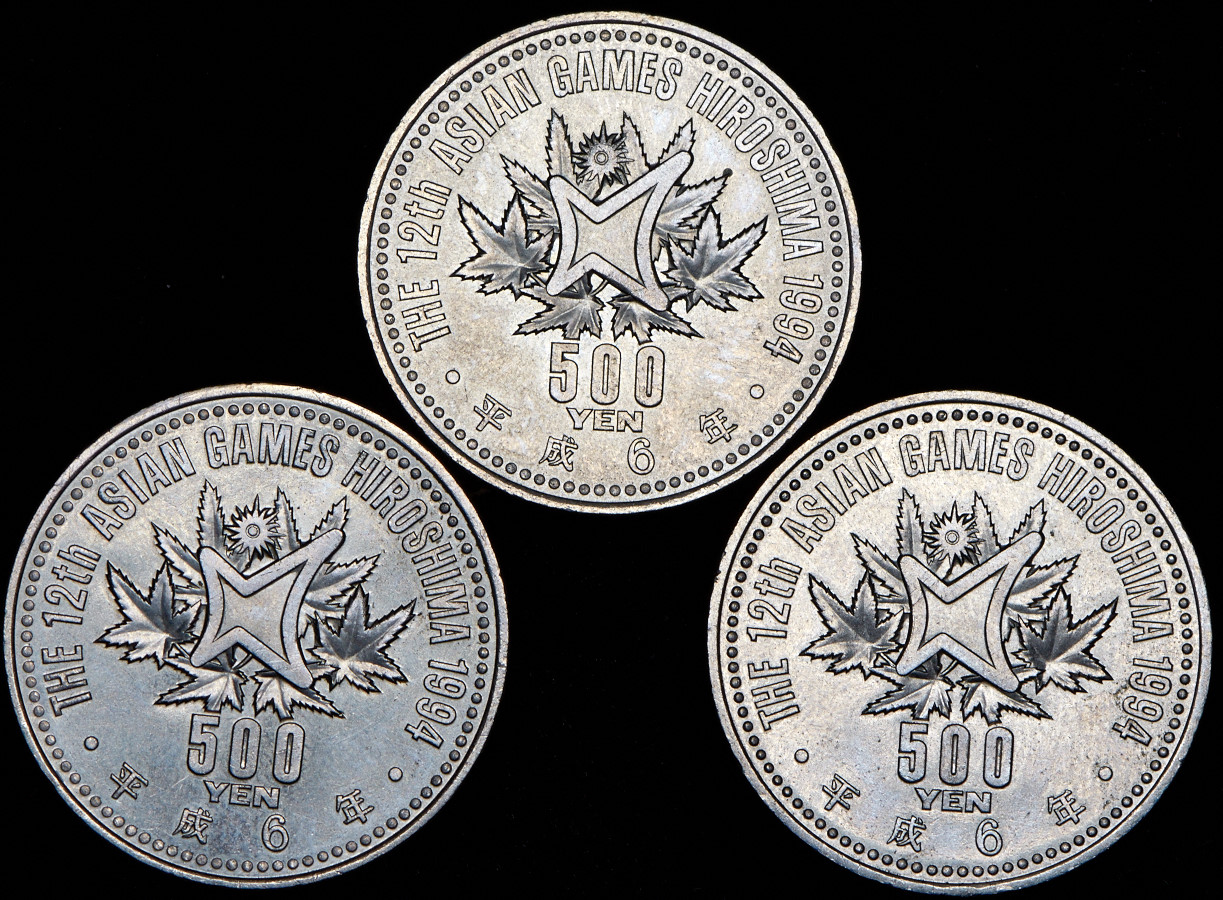Набор из 3 монет 500 йен 1994 "12-е летние Азиатские игры" (Хиросима)