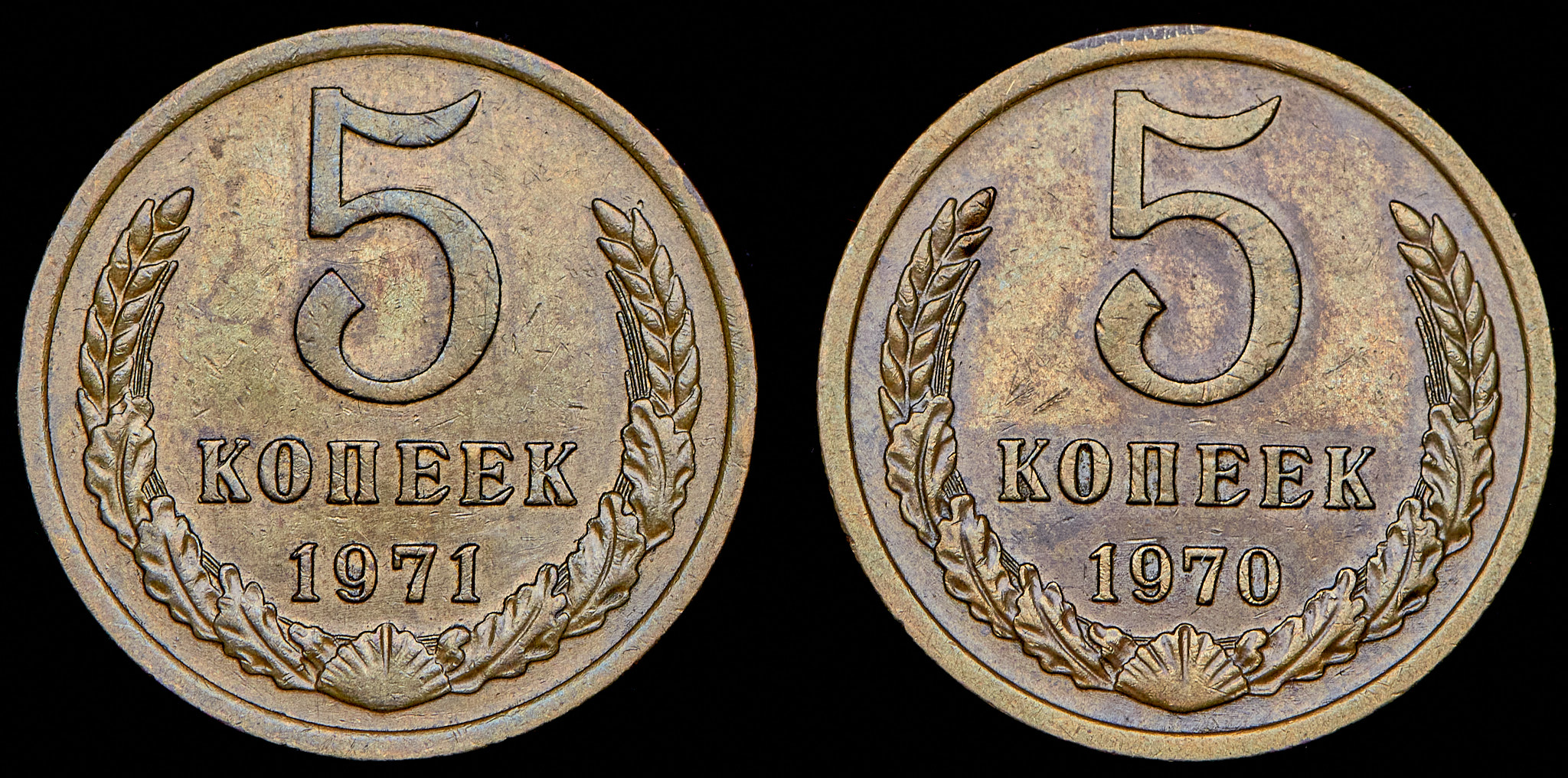 Набор из 2 монет 5 копеек 1970-1971