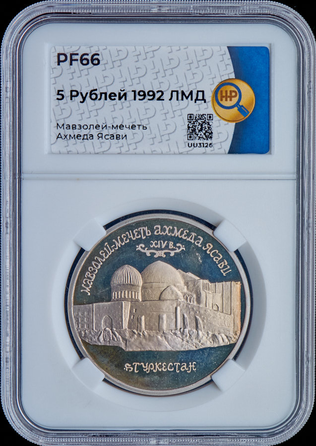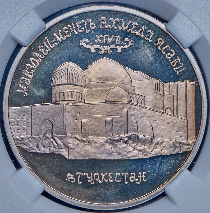 5 рублей 1992 "Мавзолей-мечеть Ахмед Ясави" (в слабе) ЛМД