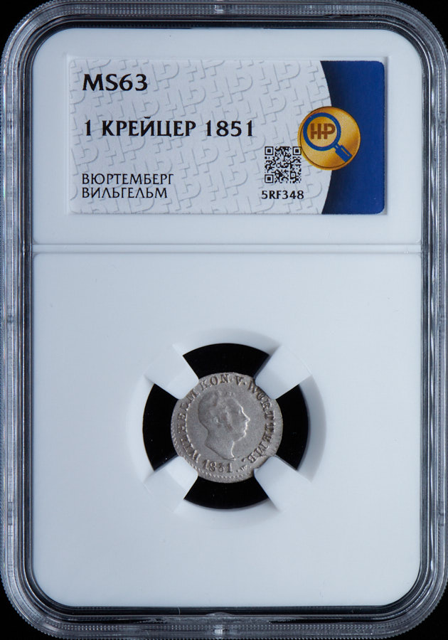 1 крейцер 1851 (Вюртемберг) (в слабе)