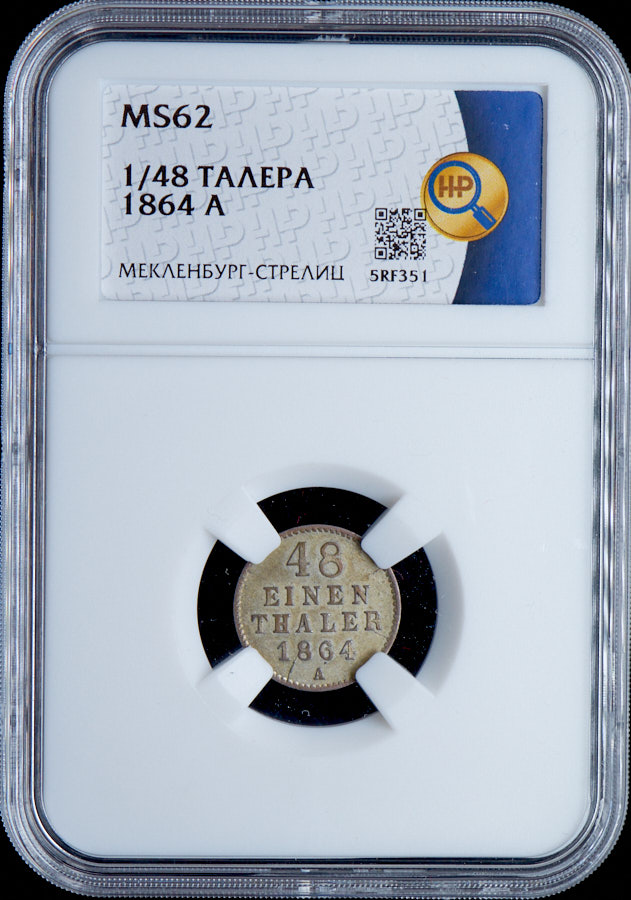 1/48 талера 1864 (Мекленбург-Стрелиц) (в слабе) A