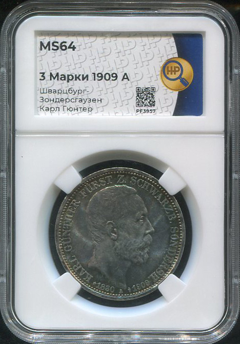 3 марки 1909 "Смерть Карла Гюнтера" (Шварцбург-Зондерсгаузен) (в слабе) A