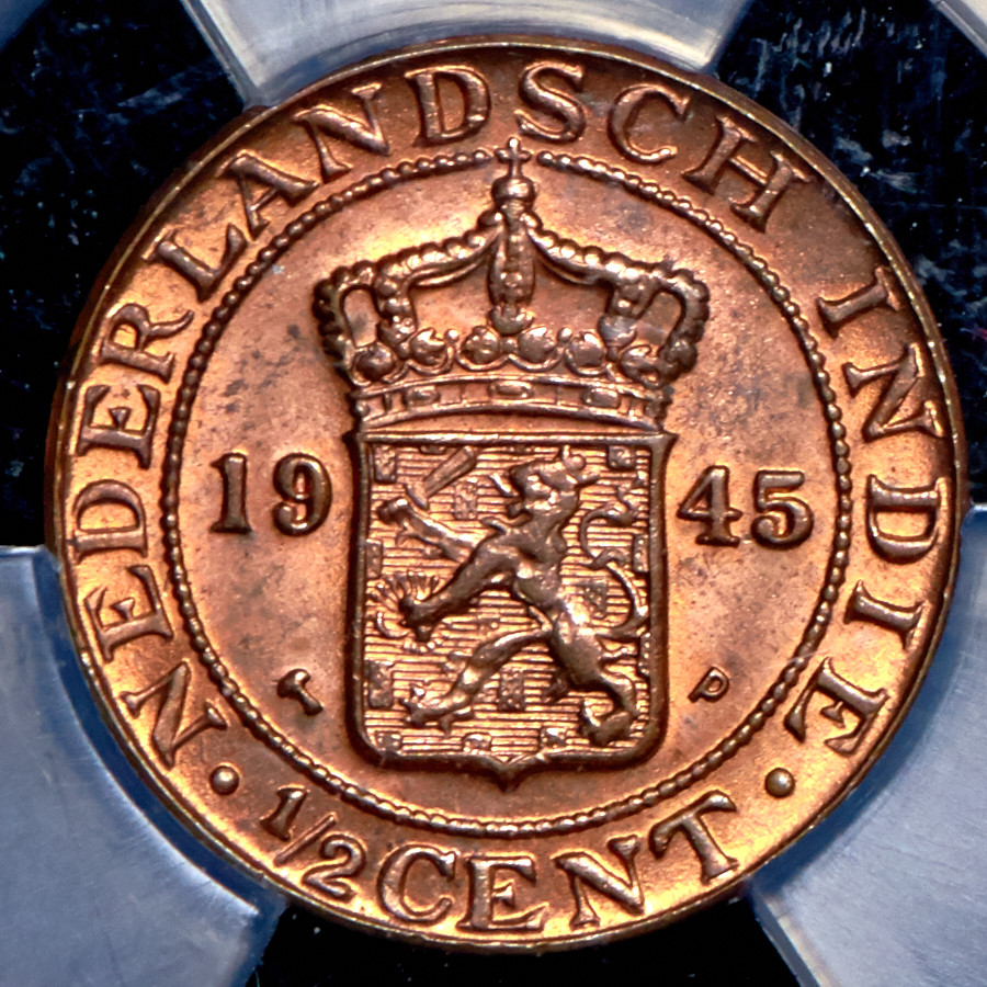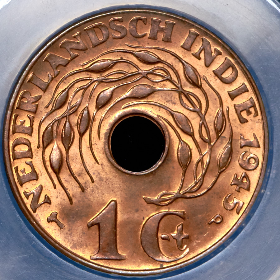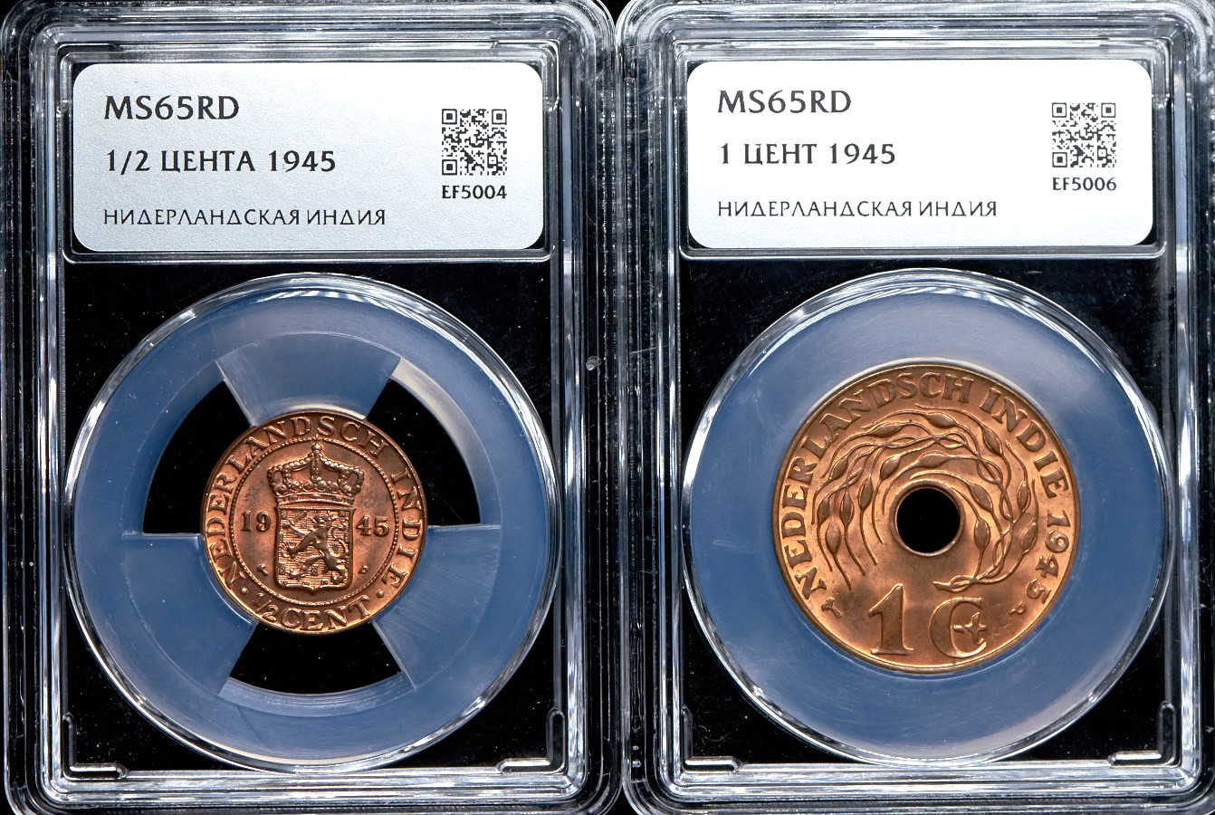 Набор из 2 медных монет 1945 (Нидерландская Индия) (в слабе)