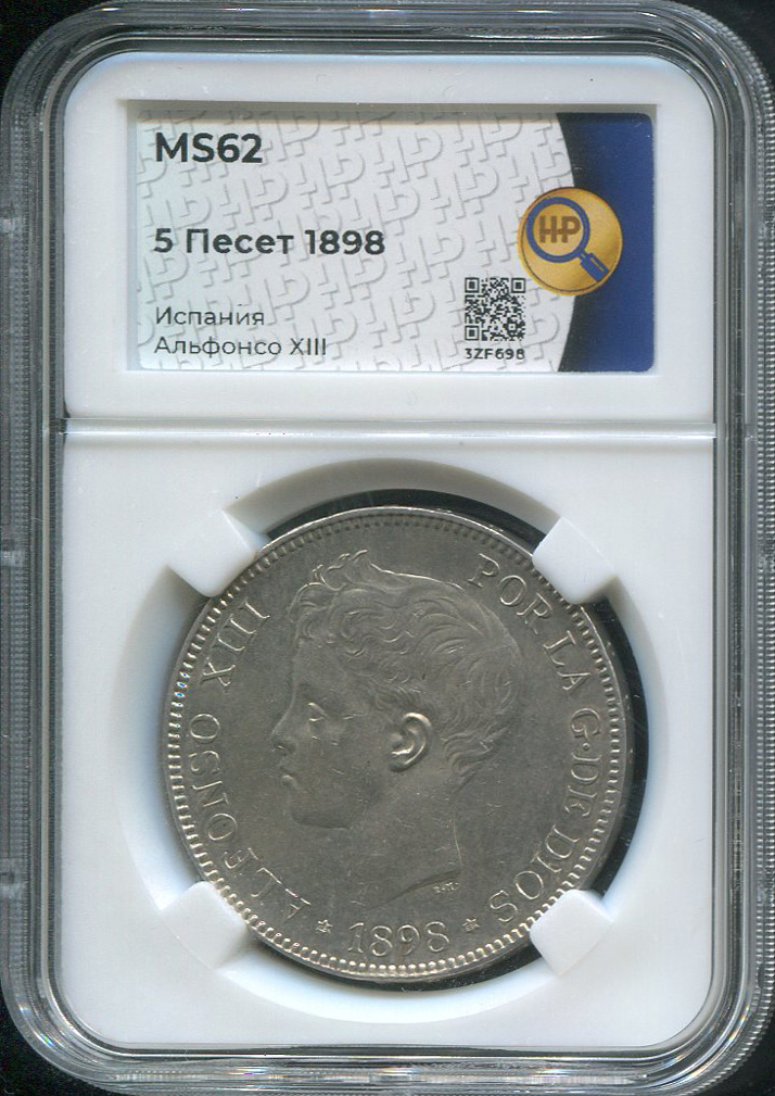 5 песет 1898 (Испания) (в слабе)