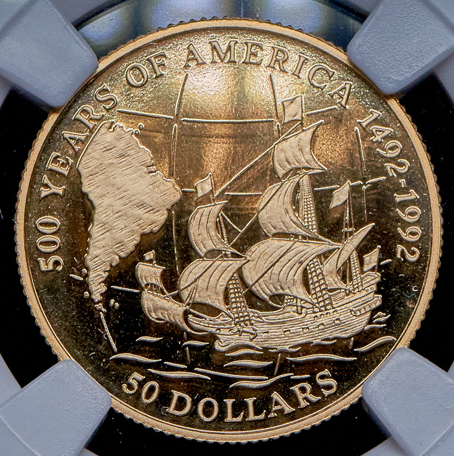 50 долларов 1992 "500 лет открытию Америки. Якоб Лемер" (Острова Кука) (в слабе)