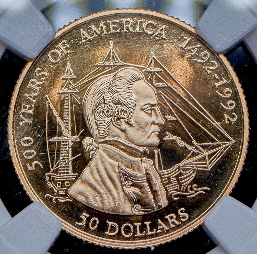 50 долларов 1993 "500 лет открытию Америки. Джеймс Кук" (Острова Кука) (в слабе)
