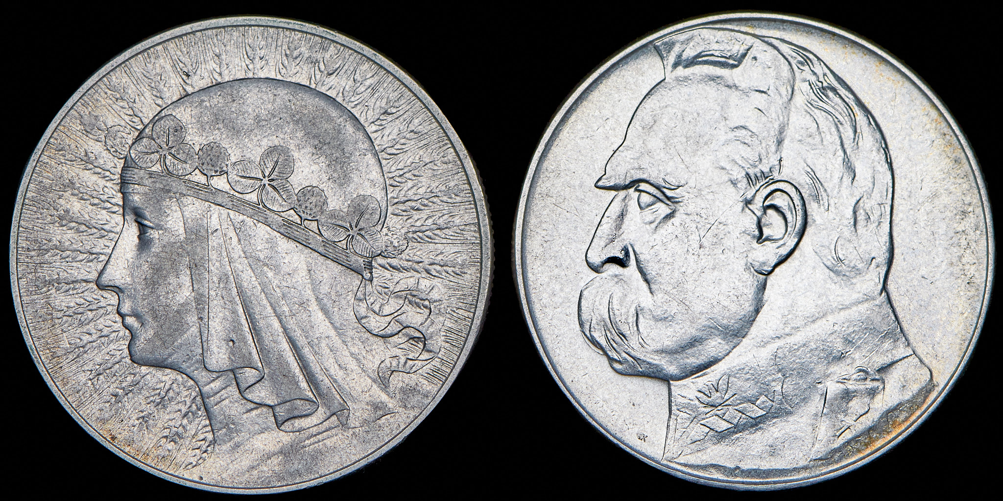 Набор из 2 сер. монет 10 злотых 1933 и 1935 (Польша)