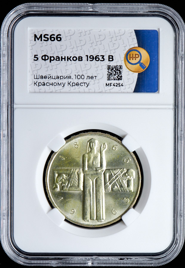5 франков 1963 "100 лет Красному Кресту" (Швейцария) (в слабе) B