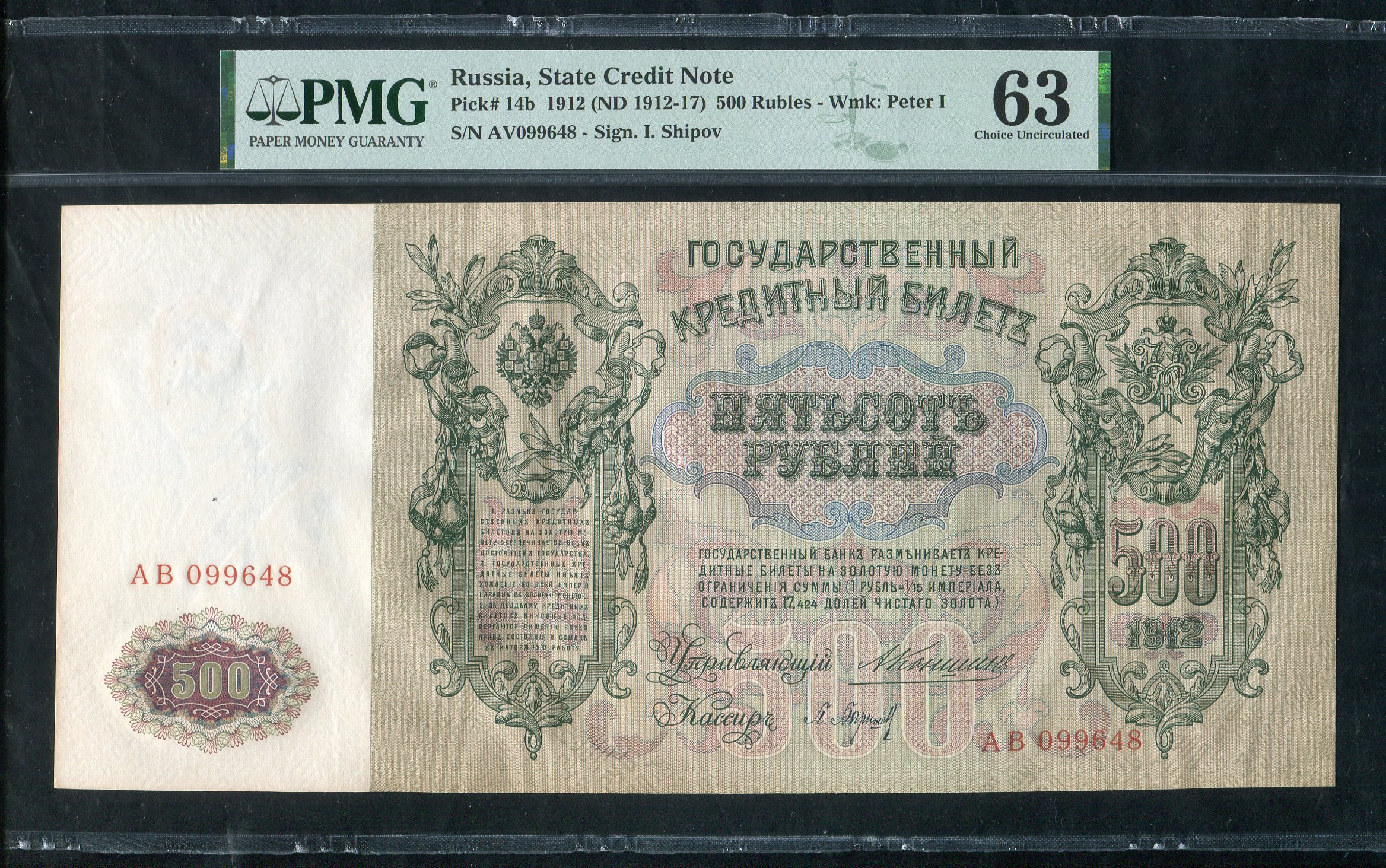 Управляющий А.В. Коншин. Кассир П. Барышев. AВ 099648. Водяной знак "500 рублей образца 1912" №44Б.