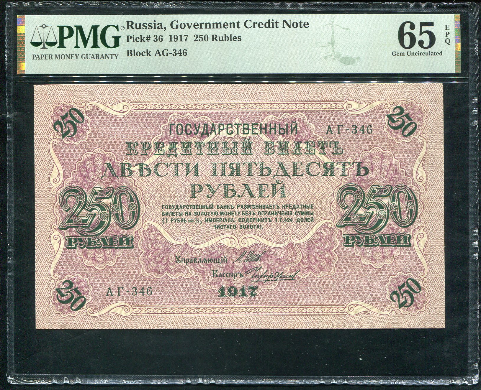 В слабе PMG 65 EPQ