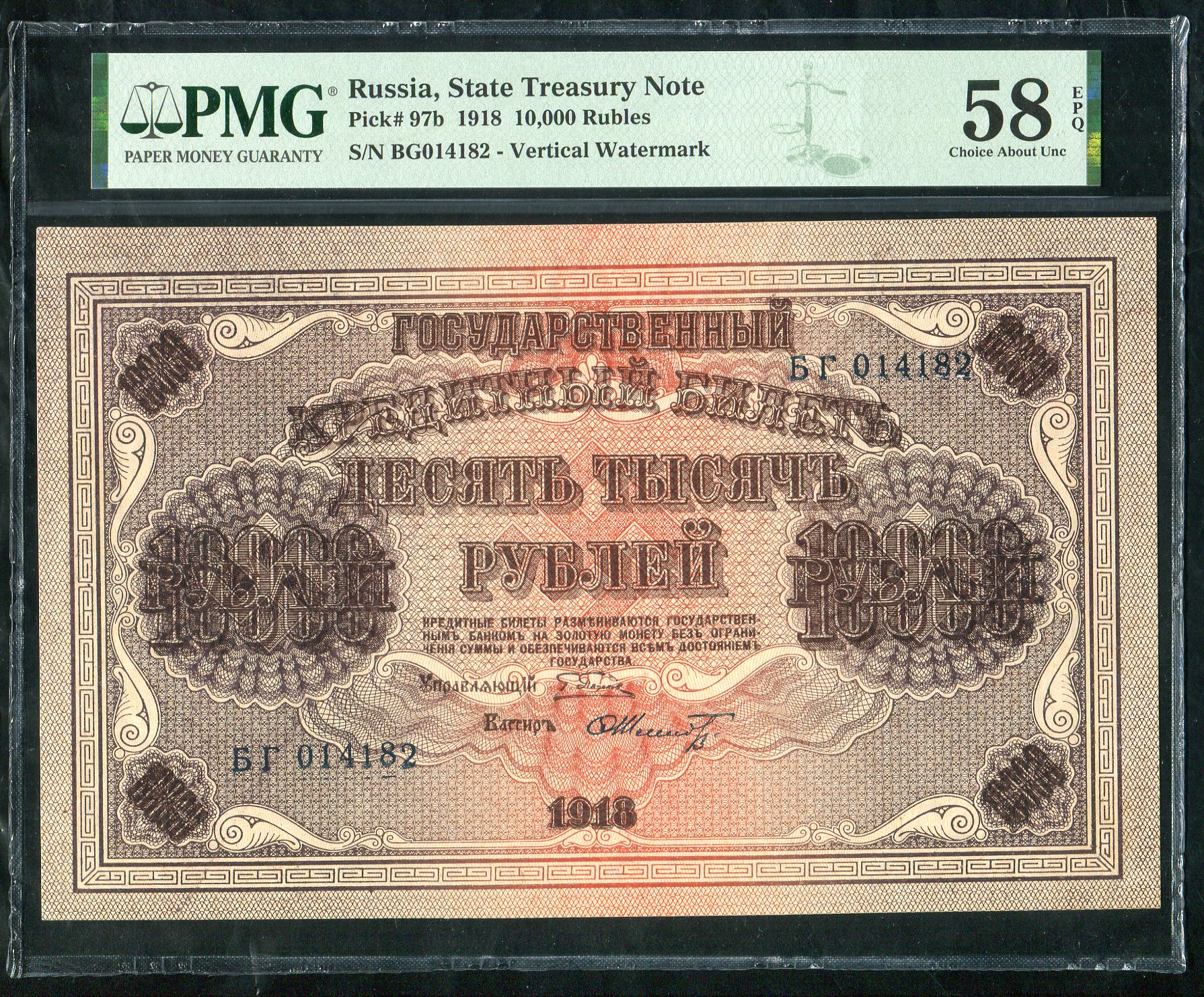 Управляющий Г.Л.Пятаков. Кассир Шмидт. БГ 014182. Водяной знак "Ковер" (вертикально).