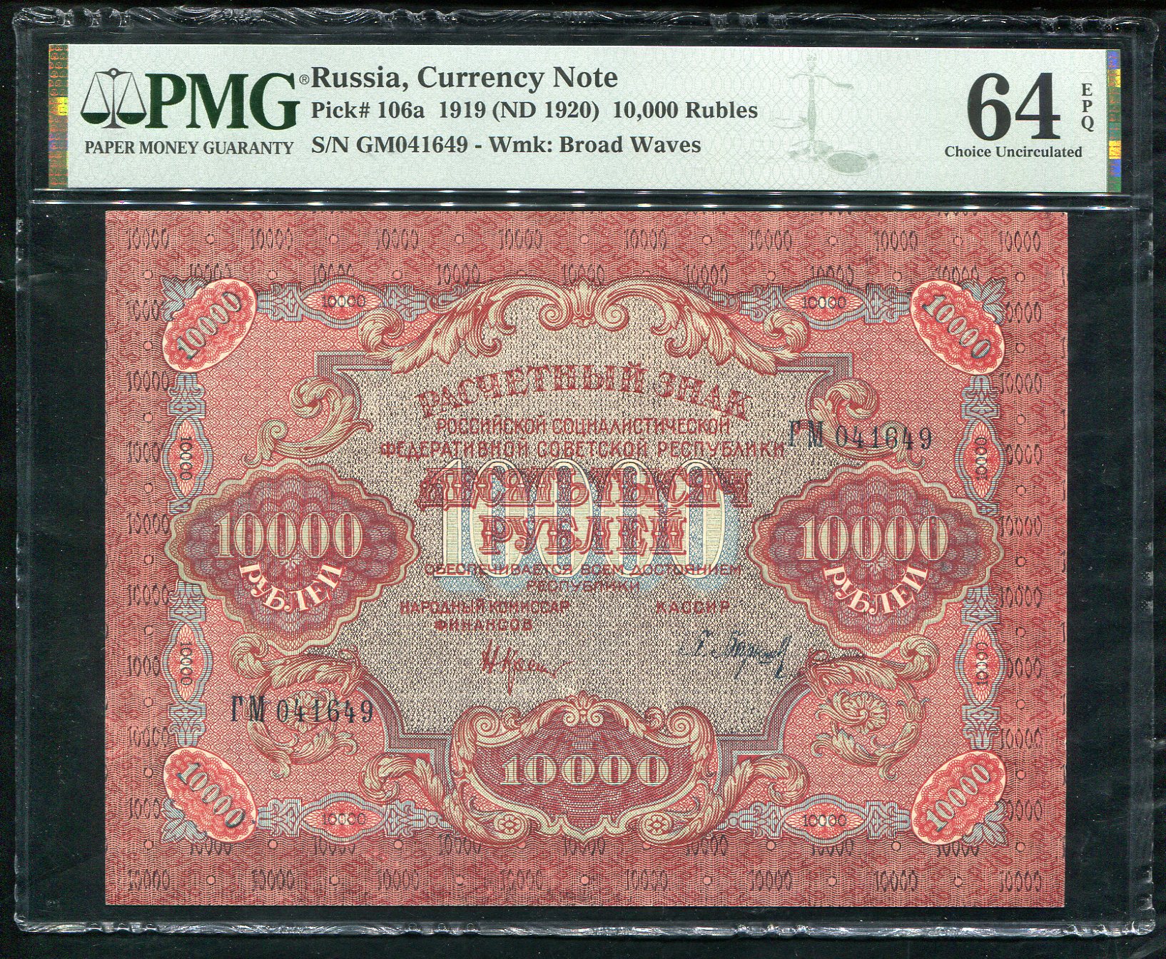 10000 рублей 1919 (в слабе)