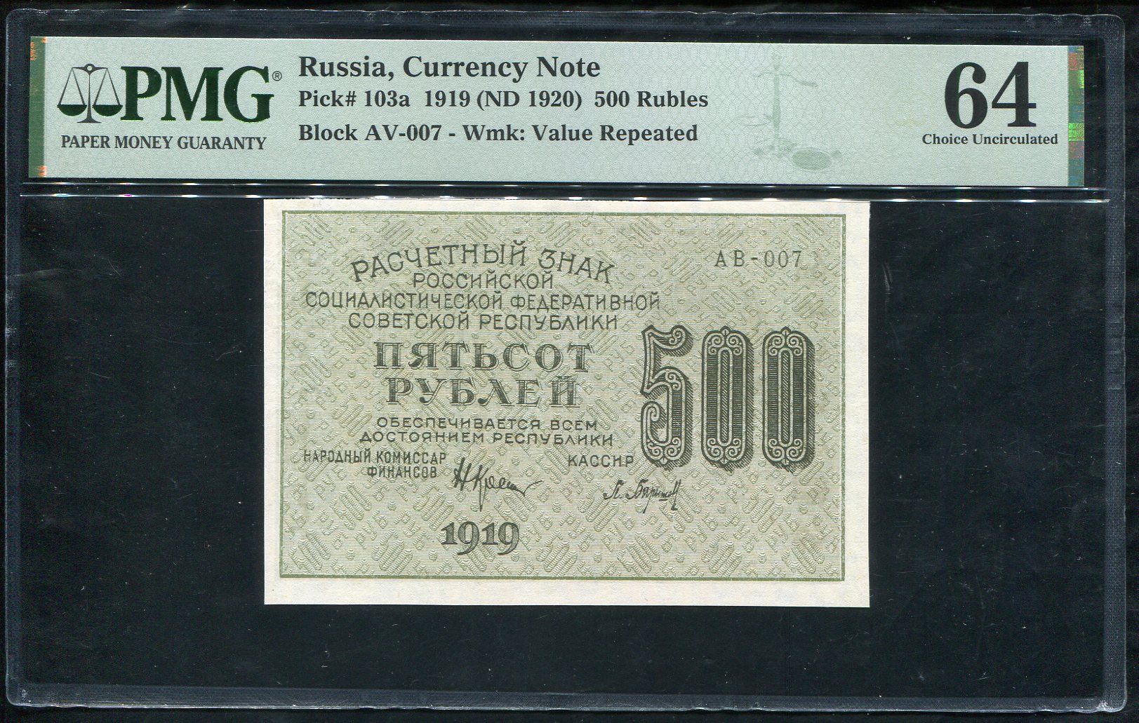 500 рублей 1919 (в слабе)