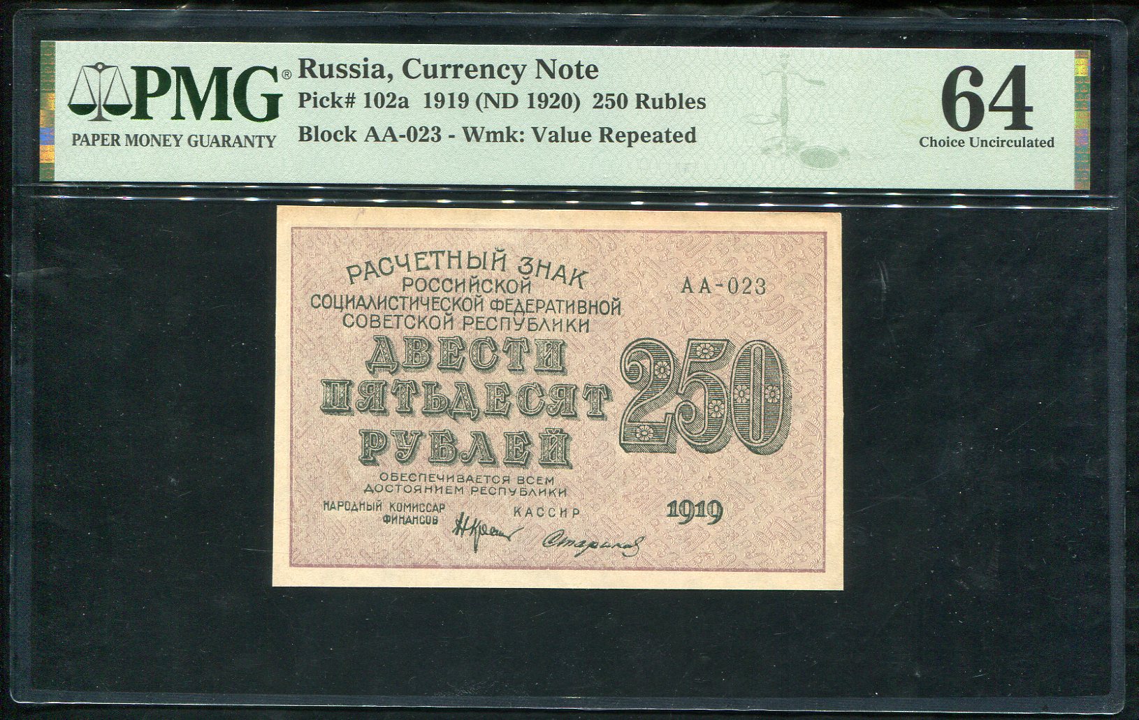 250 рублей 1919 (в слабе)