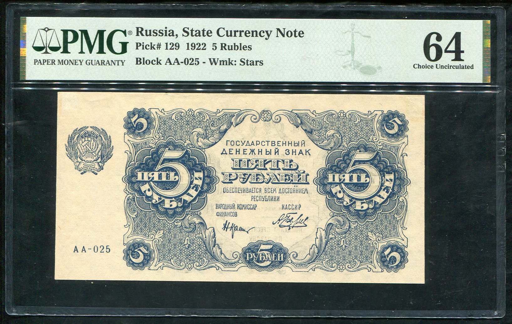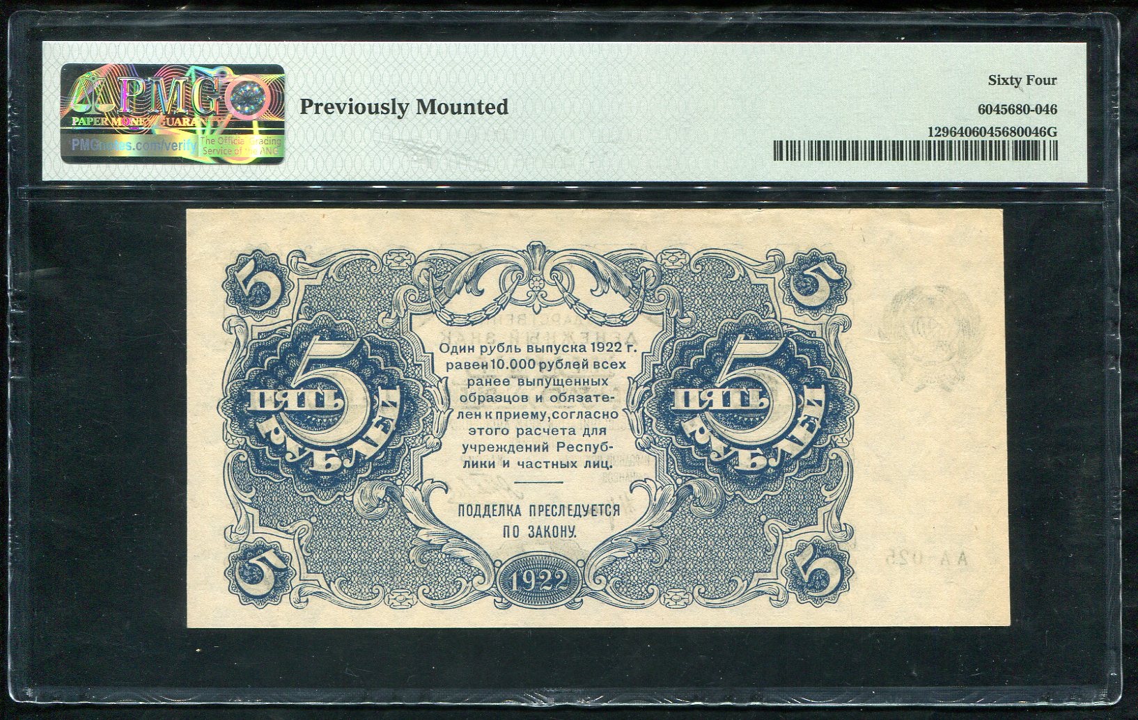 5 рублей 1922 (в слабе)