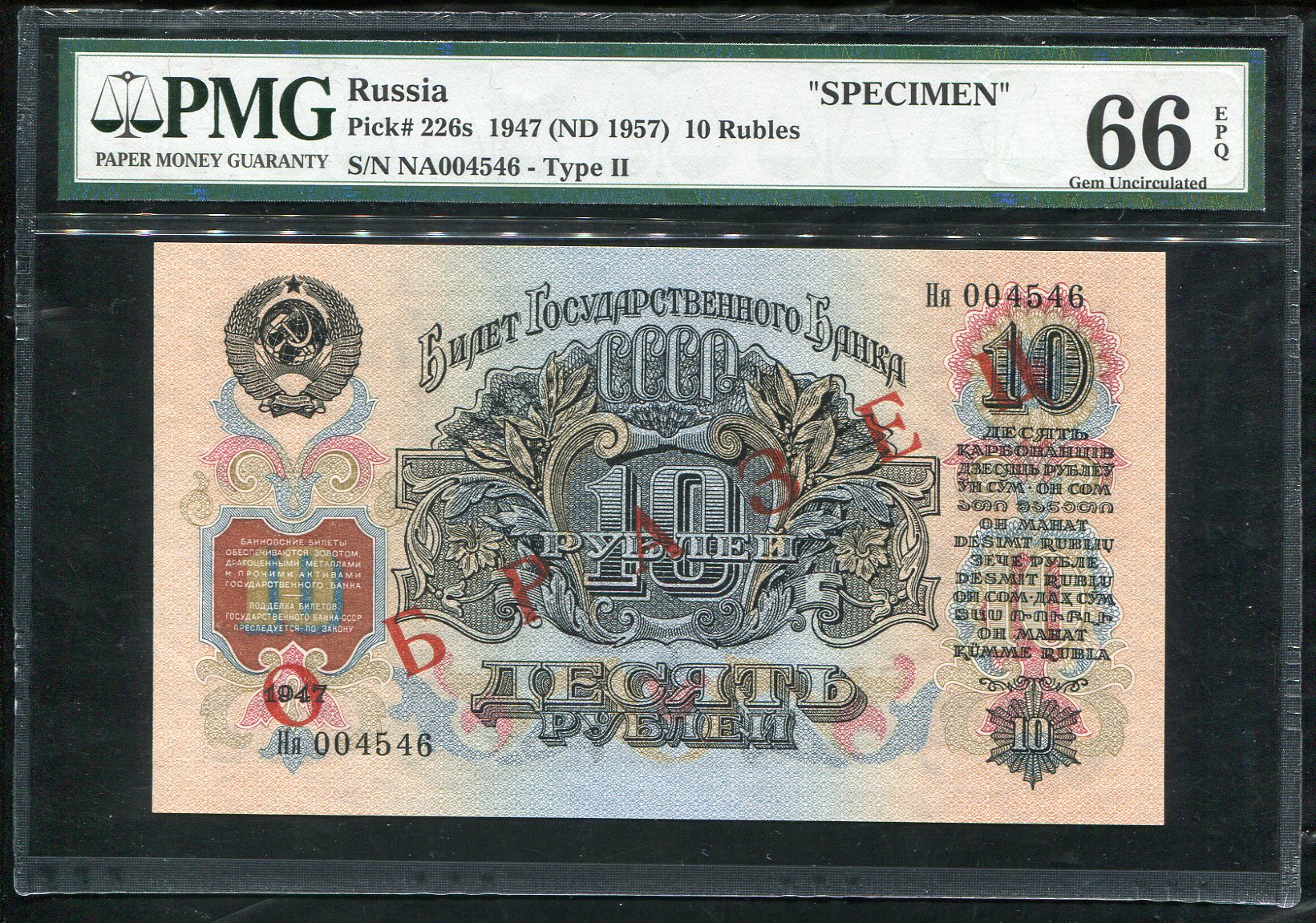 10 рублей 1947. Образец (в слабе)