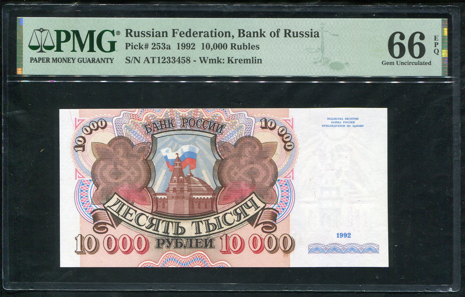 10000 рублей 1992 (в слабе)