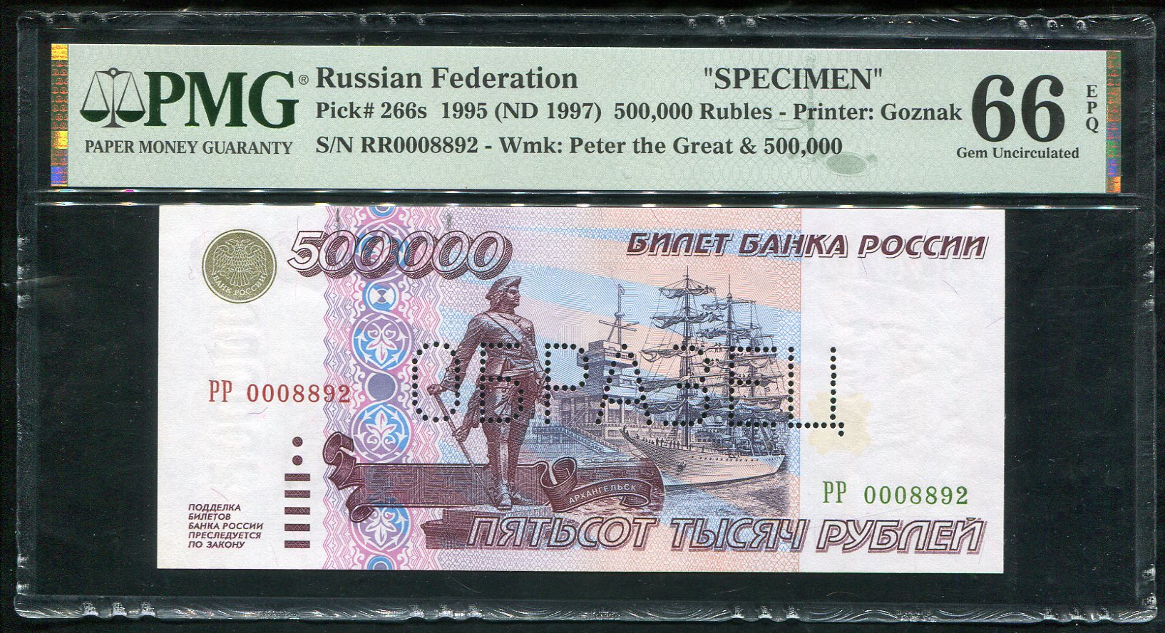 500000 рублей 1995. Образец (в слабе)