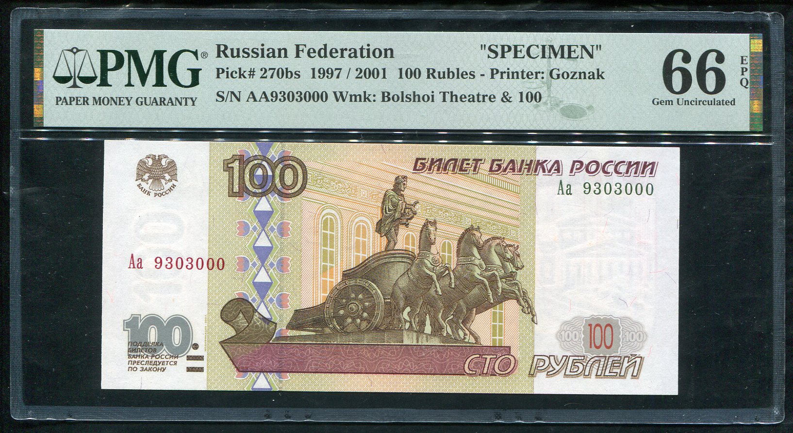 100 рублей 2001. Образец (в слабе)