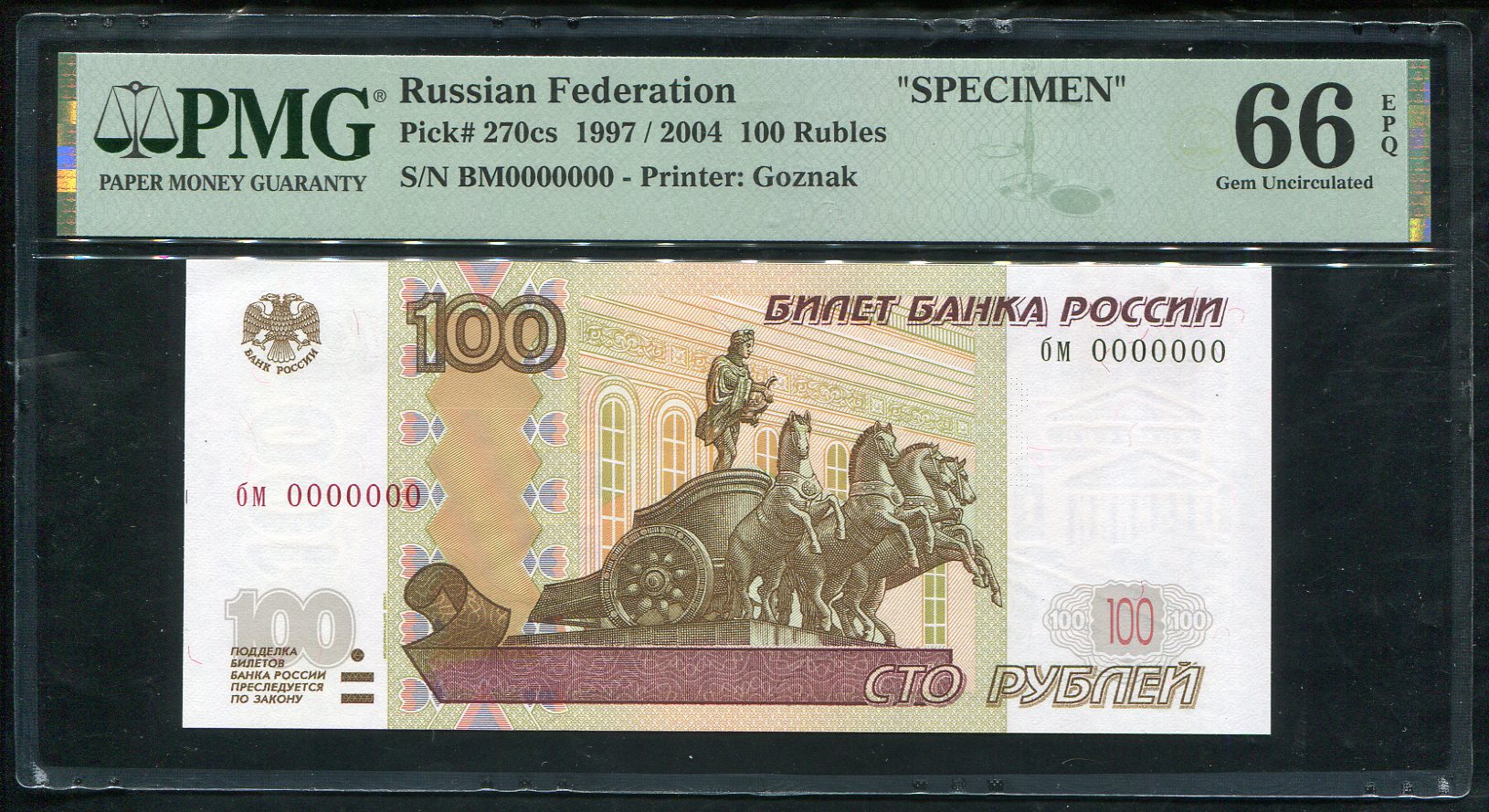 100 рублей 2004. Образец (в слабе)