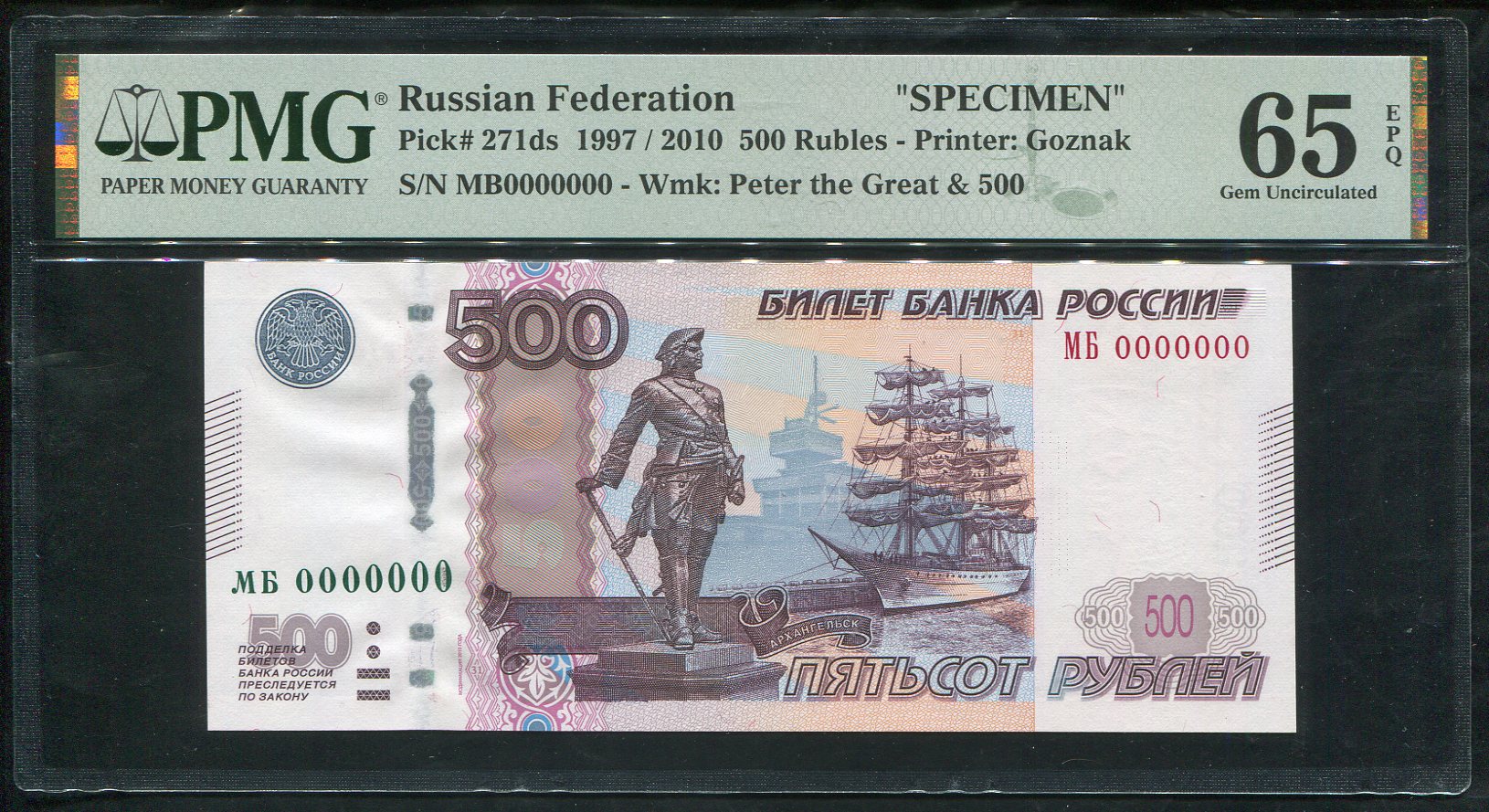 500 рублей 2010. Образец (в слабе)