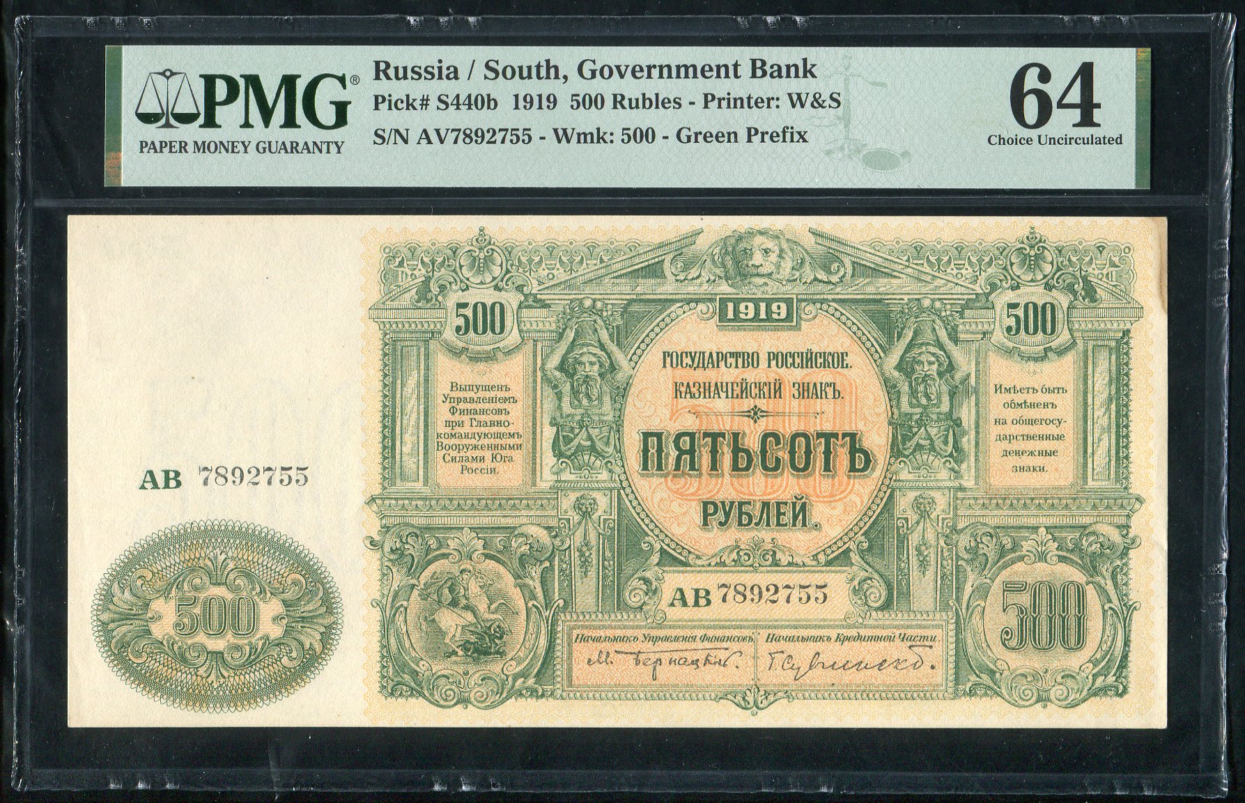 500 рублей 1919 (ВСЮР) (в слабе)