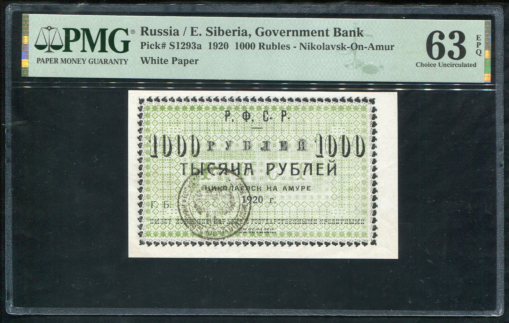 1000 рублей 1920 (Николаевск-на-Амуре) (в слабе)