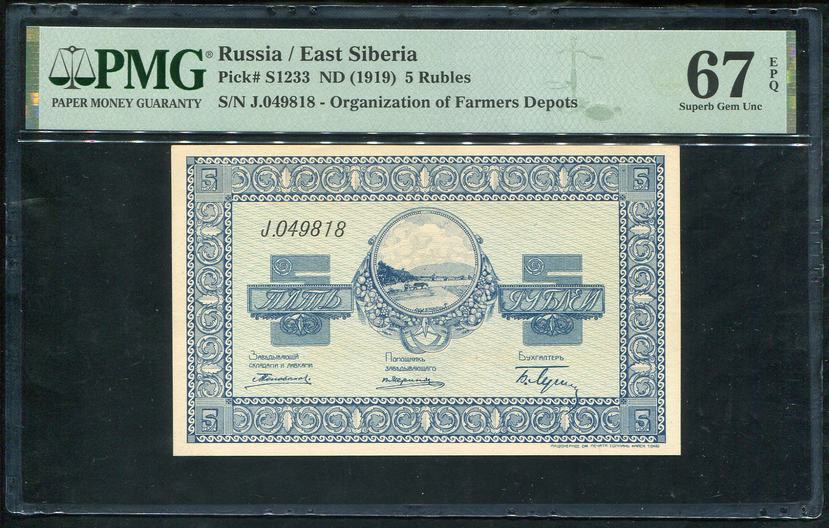 5 рублей 1919 "Организация Казённых Сельско-Хозяйственных Складов" (Никольск-Уссурийск) (в слабе)