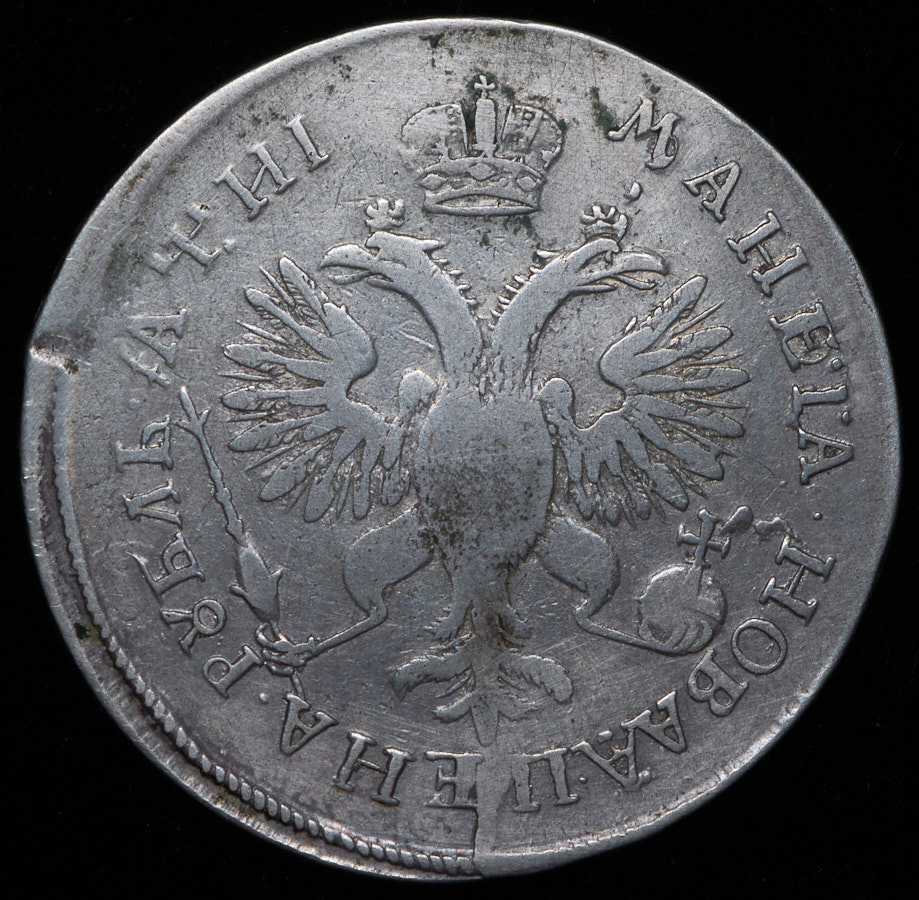 Кадашевский монетный двор. Инициалы медальера "ОК", без арабесок на груди, в круговой надписи "РОСNI" вместо "РОСИI". "L" на лапе орла, "МАНЕТА".