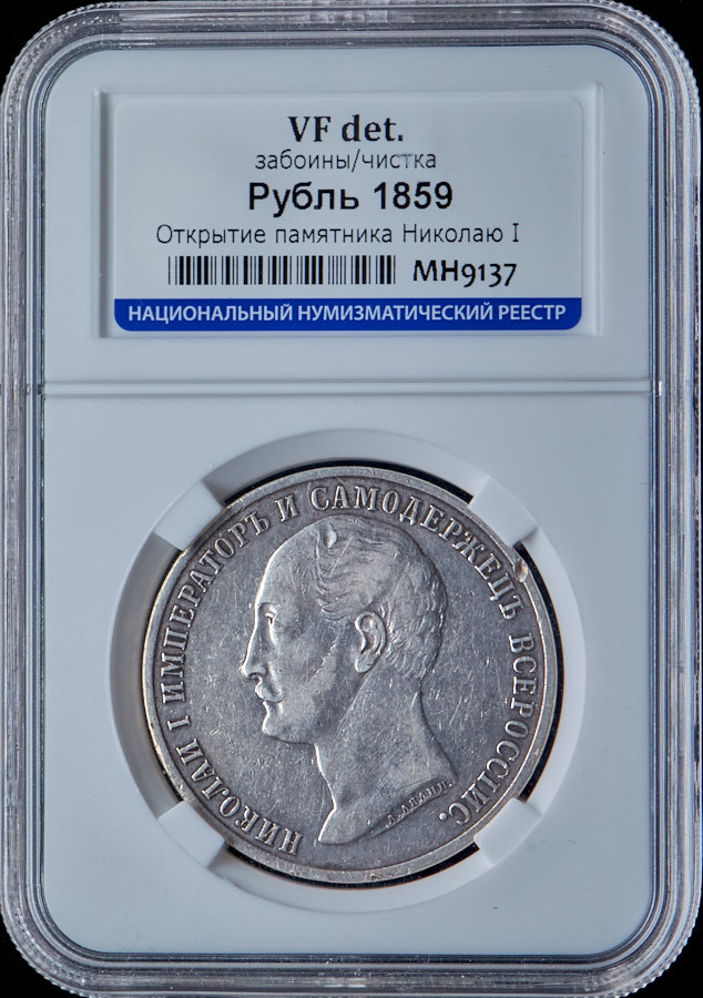 Рубль 1859 "С памятником Николаю I" (в слабе)