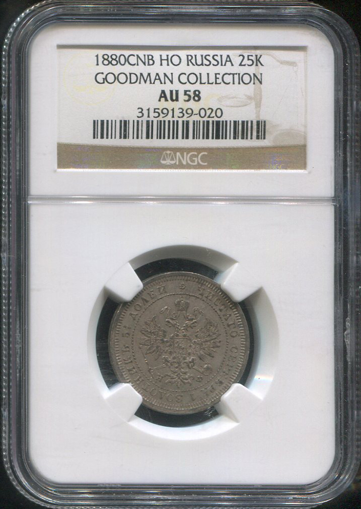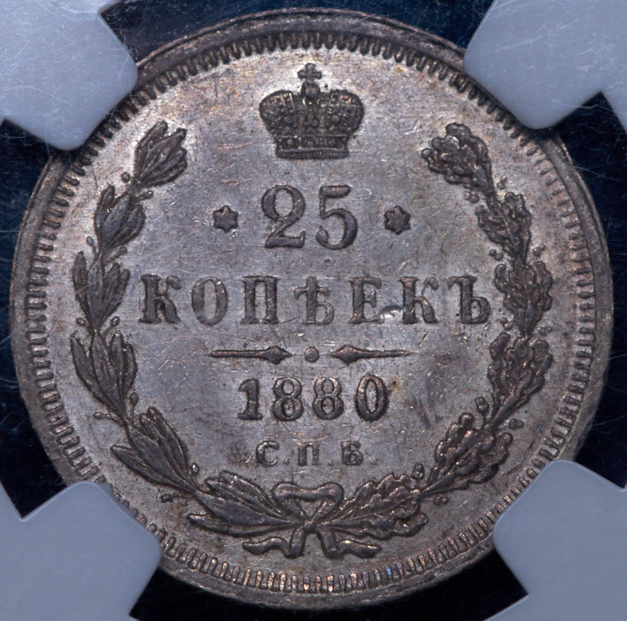 25 копеек 1880 (в слабе) СПБ-НФ