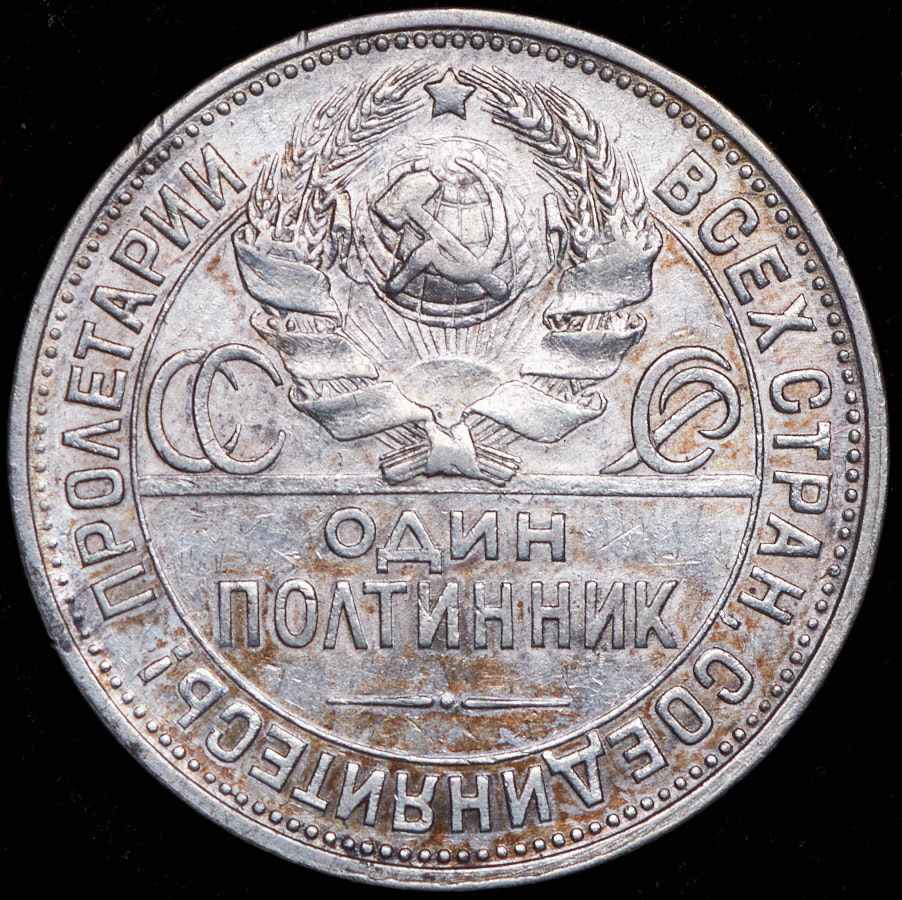 Гуртовая надпись образца 1924 года "Чистого серебра 9 грамм (2 З. 10,5 Д.) П•Л".Следы чистки.Редка.