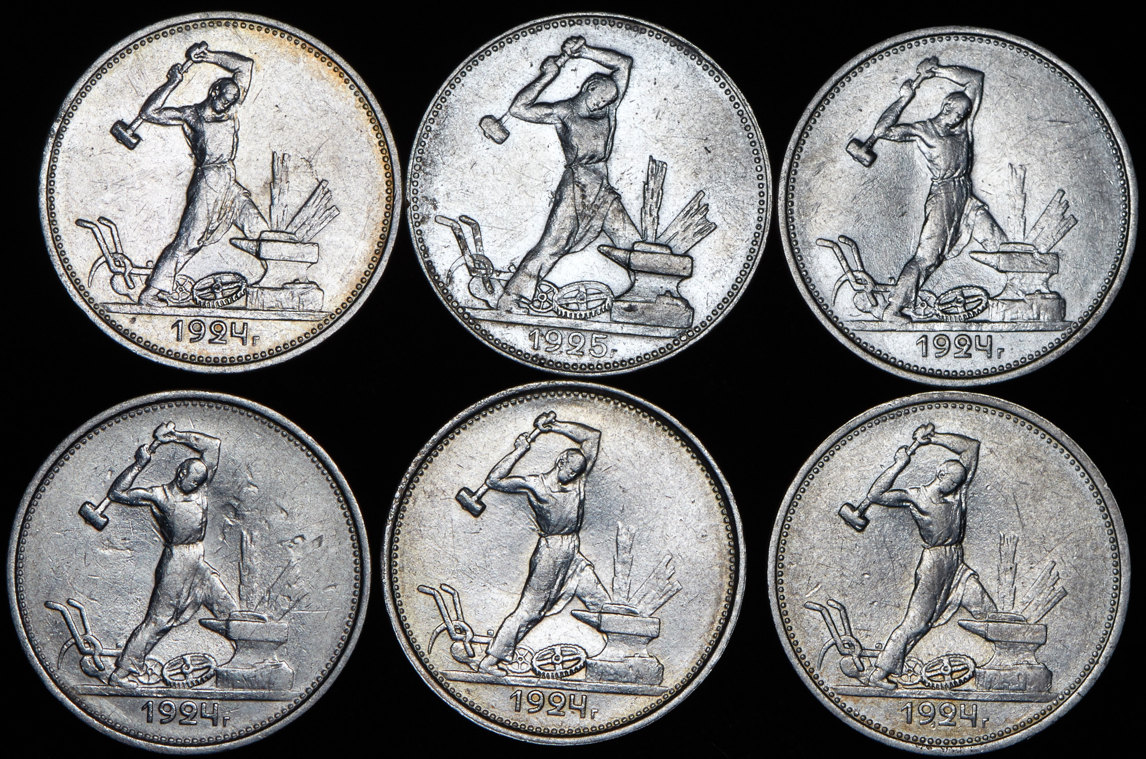В набор вошли: - Полтинник 1924 (ТР) - 5 шт.- Полтинник 1925 (ПЛ) - 1 шт.XF-MS.