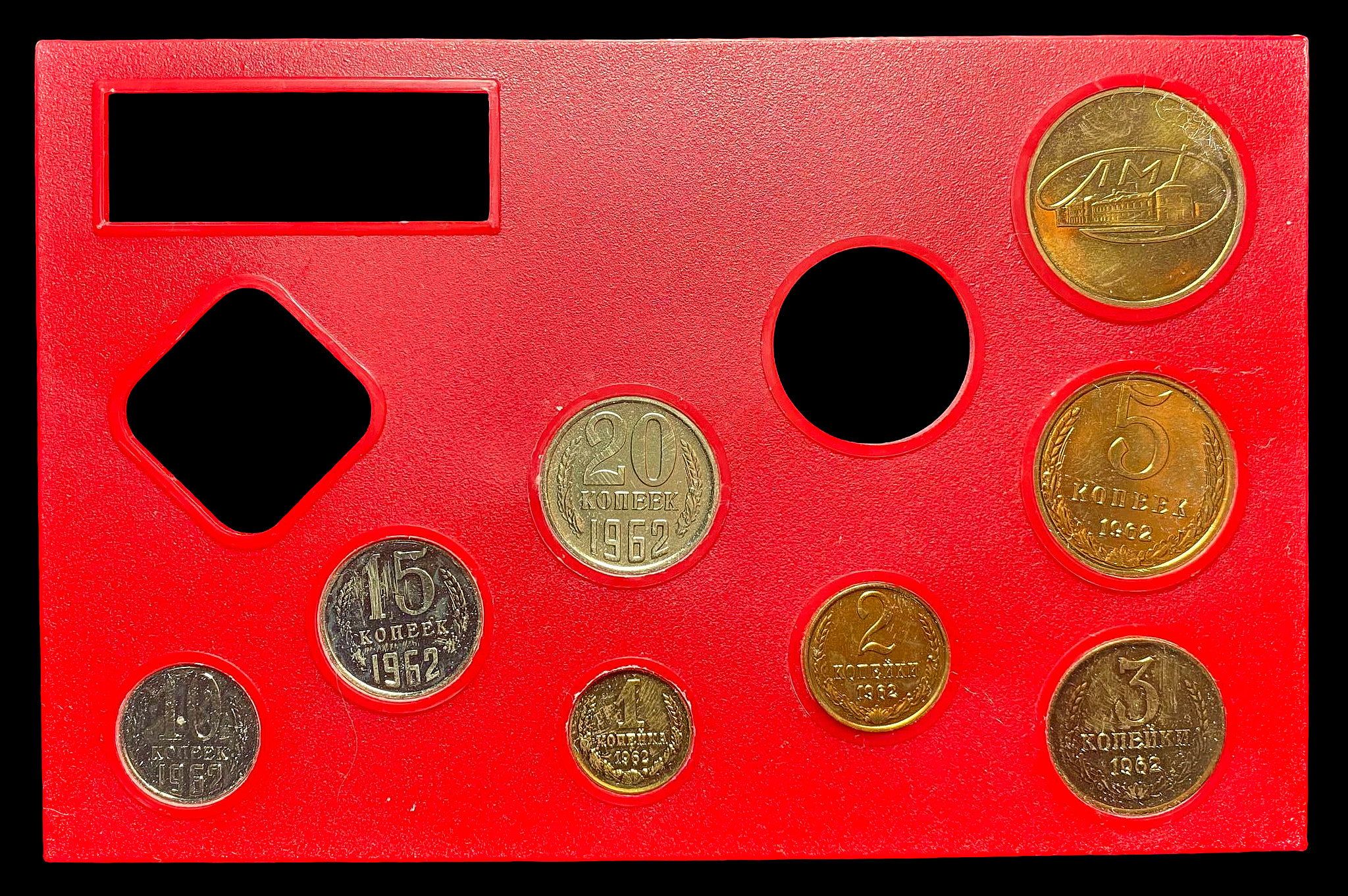 Различные металлы.Предметы набора вставлены в холдер более поздних лет выпуска.