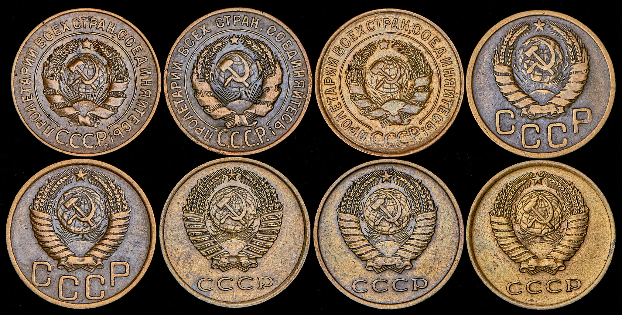Набор из 8 монет 3 копейки 1928-1966