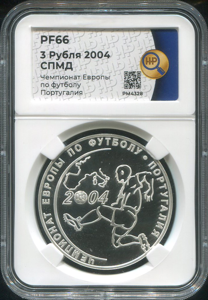 3 рубля 2004 "Чемпионат Европы по футболу 2004 года в Португалии" (в слабе) СПМД