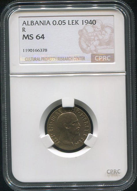 Итальянская оккупация АлбанииKM# 27. В слабе CPRC.