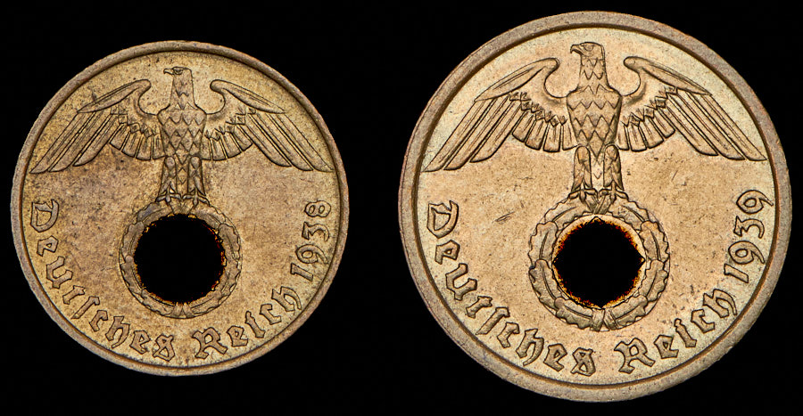 Набор из 2 монет 5, 10 пфеннигов 1938-1939 (Германия)