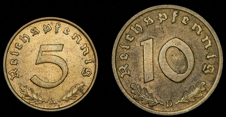 Набор из 2 монет 5, 10 пфеннигов 1939 (Германия)