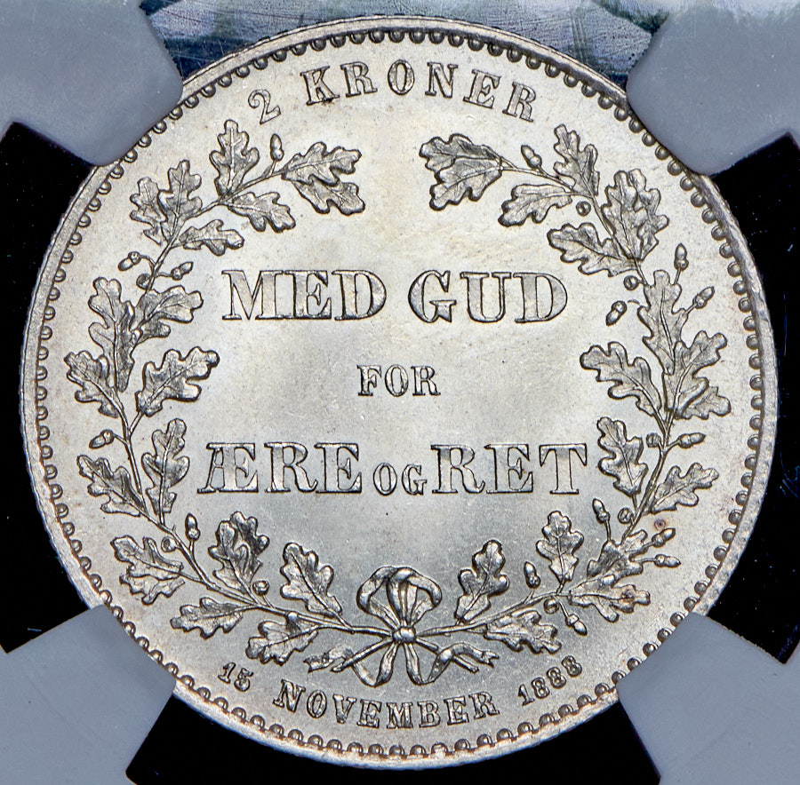 2 кроны 1888 "25 лет правления Кристиана IX" (Дания) (в слабе)