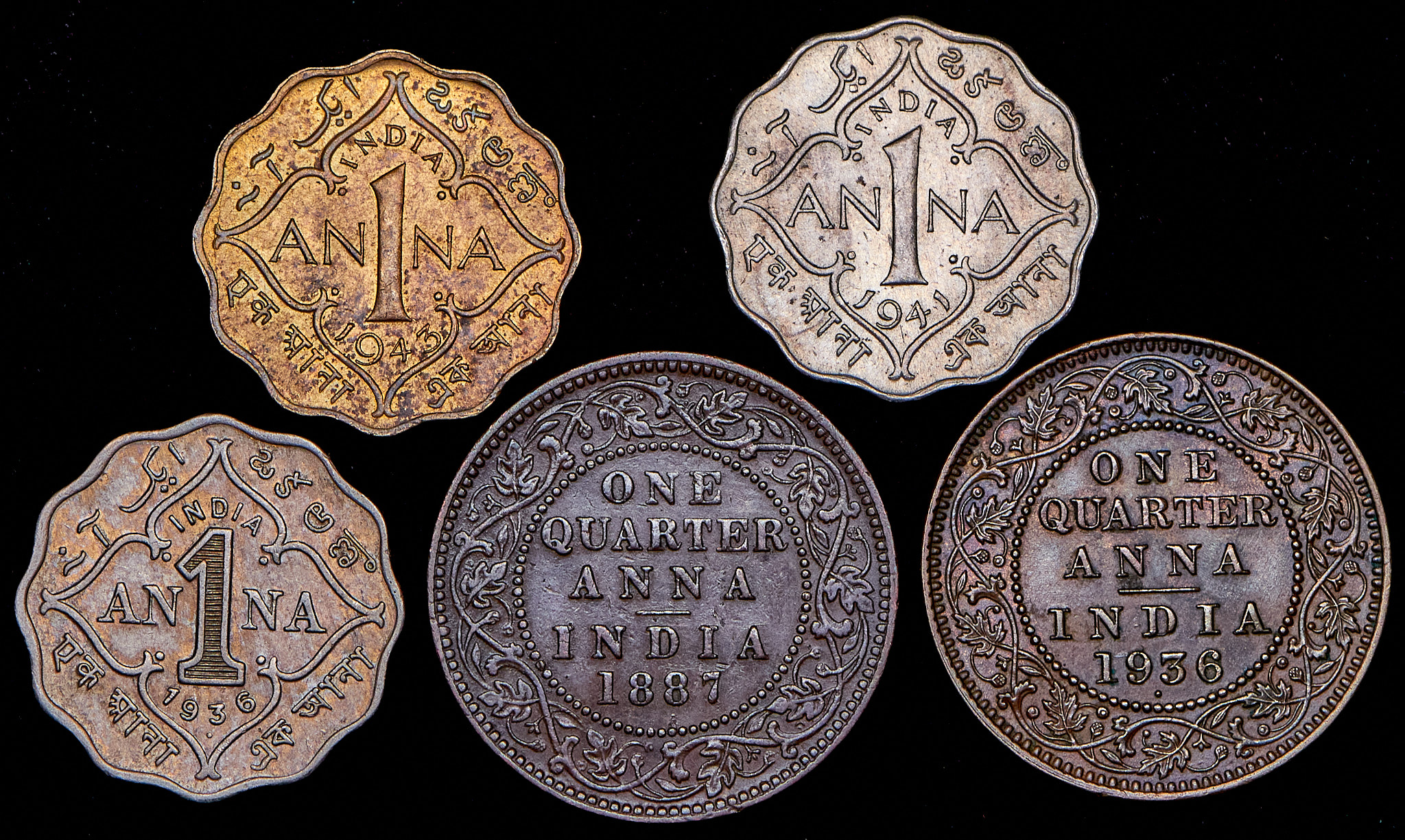Набор из 5 монет 1887-1943 (Индия)