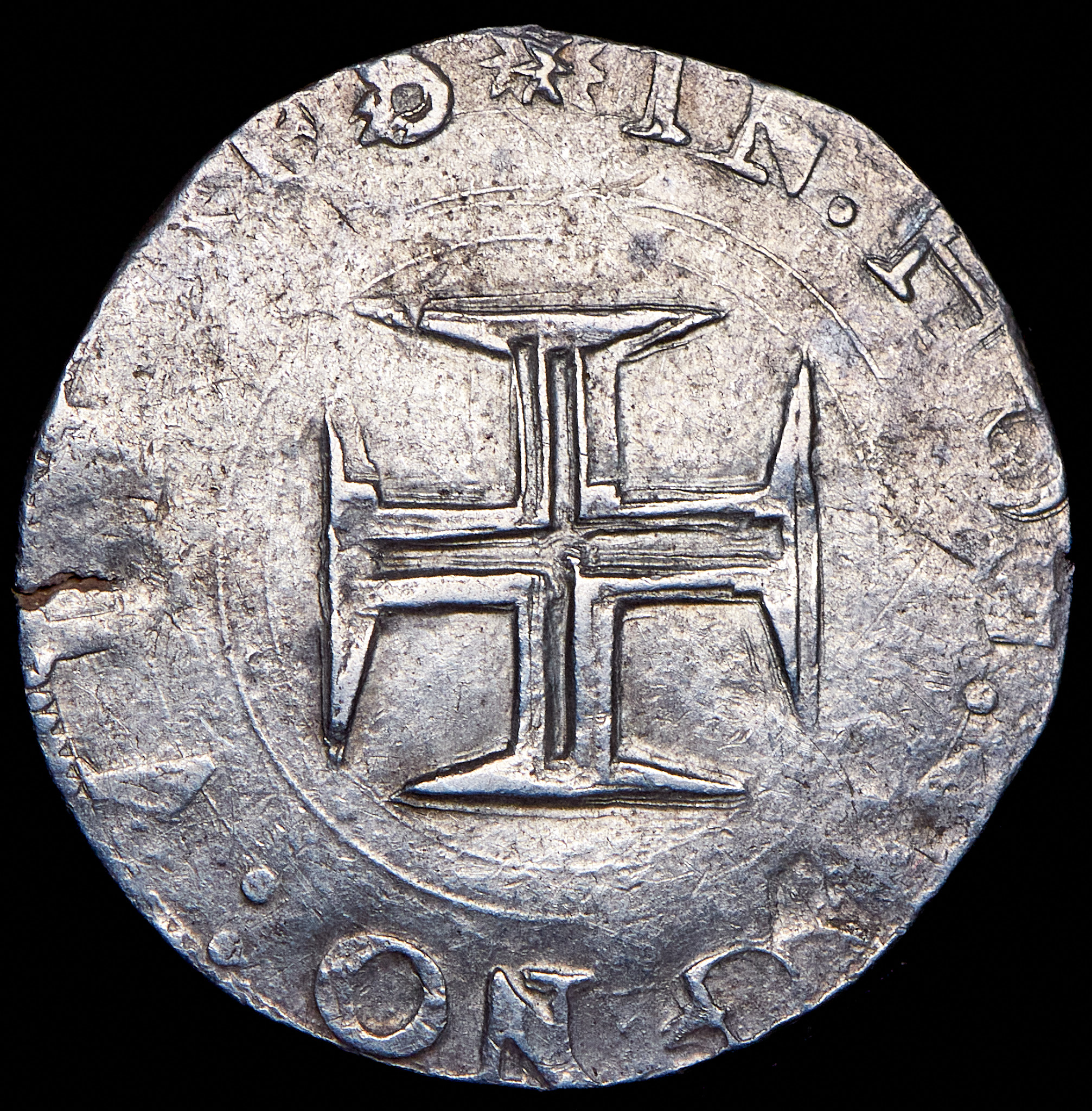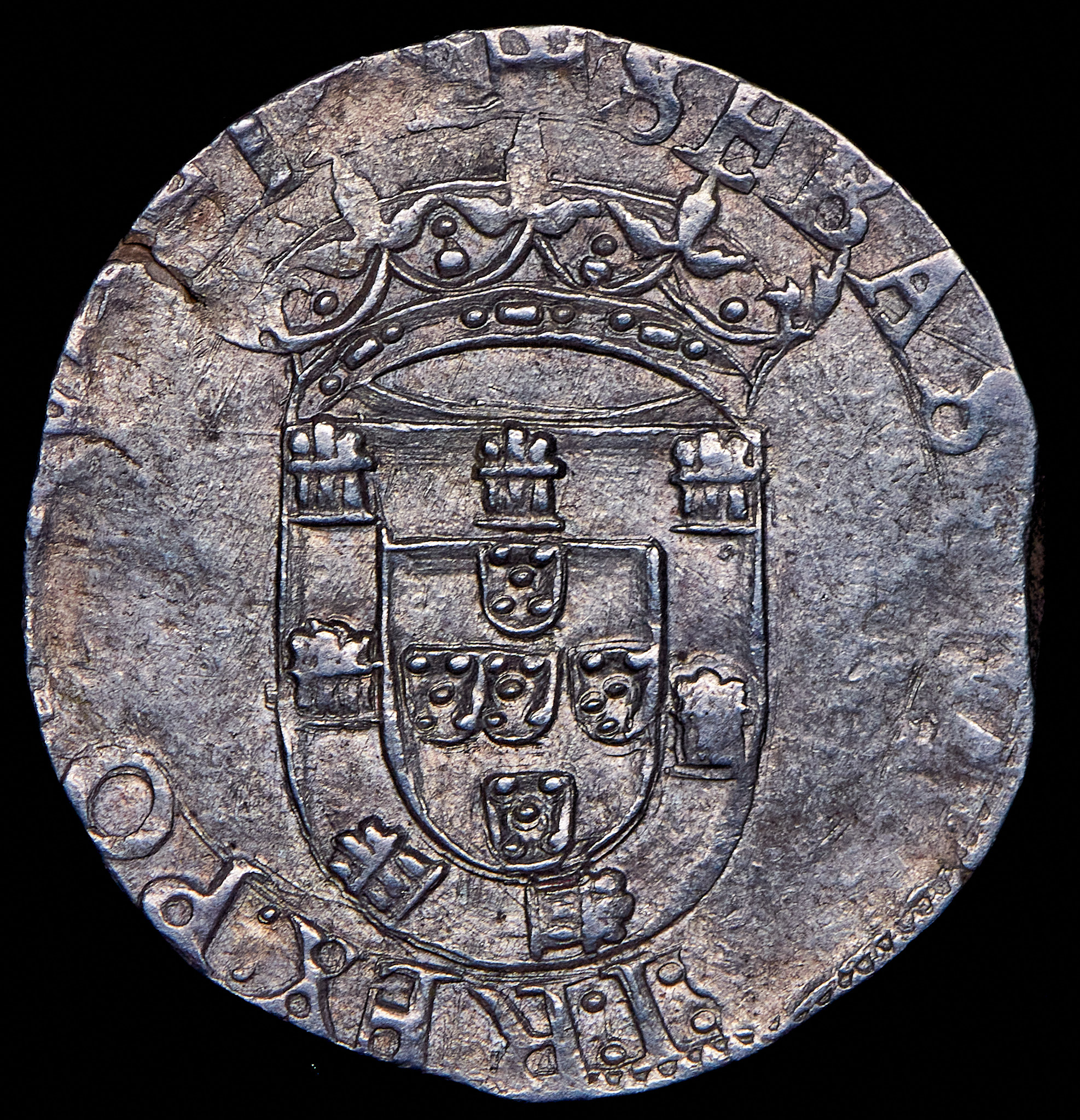 Себастьян (1557-1578).Чеканена в Лиссабоне.Редка.Легенда аверса "+ SEBASTIANVS : I : REX : PORTVG : ET:AL"