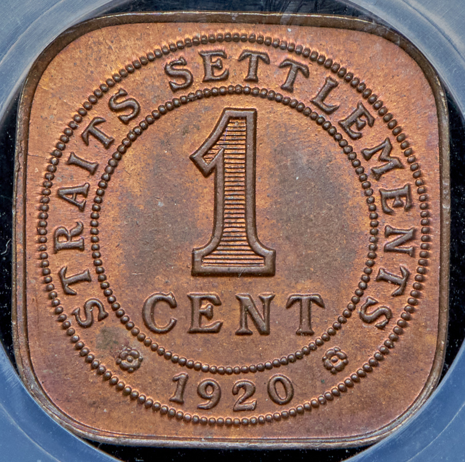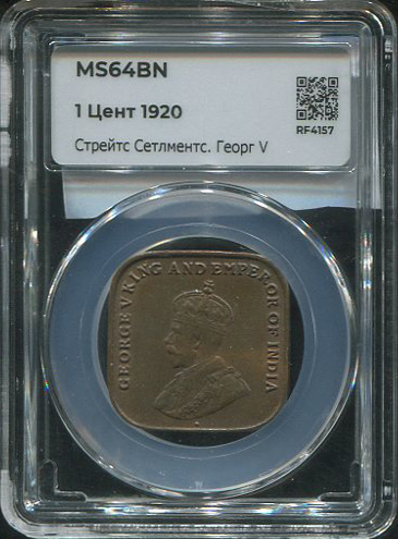 1 цент 1920 (Стрейтс Сетлментс) (в слабе)